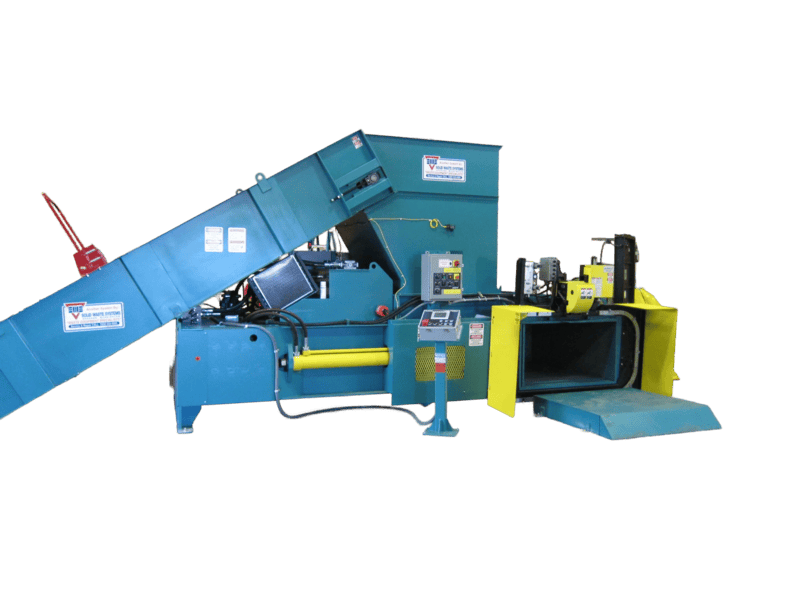 - Spacious 54″ x 78″ feed opening with tongue-and-groove floor accommodates bulky post-industrial cardboard and efficiently compacts paper, plastic, fiber, and similar recyclables.